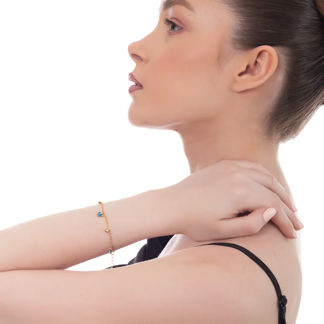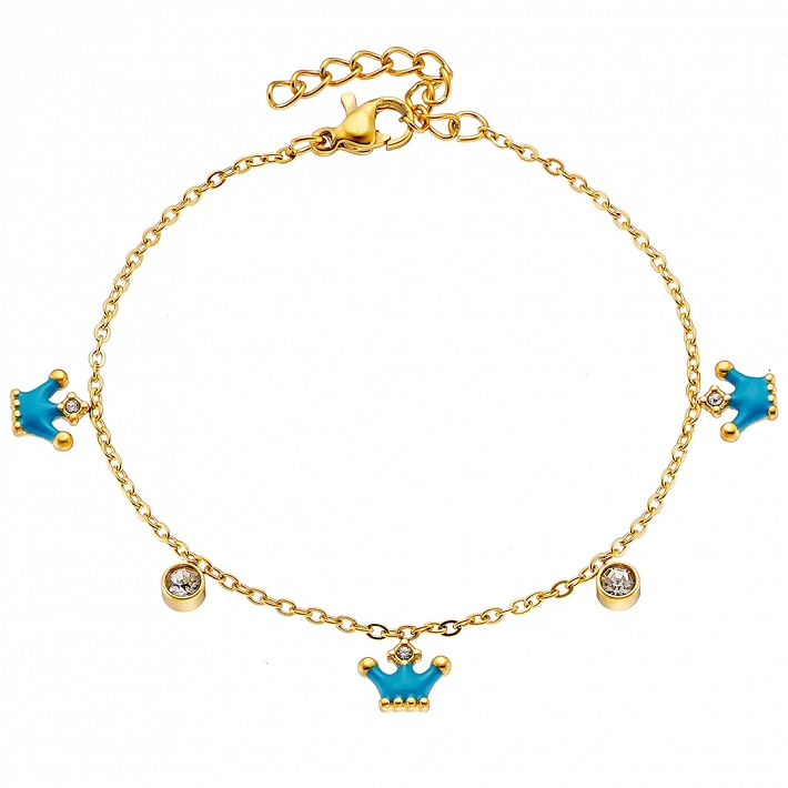 Oxzen γυναικείο βραχιόλι ατσάλινο με κρεμαστές γαλάζιες κορώνες