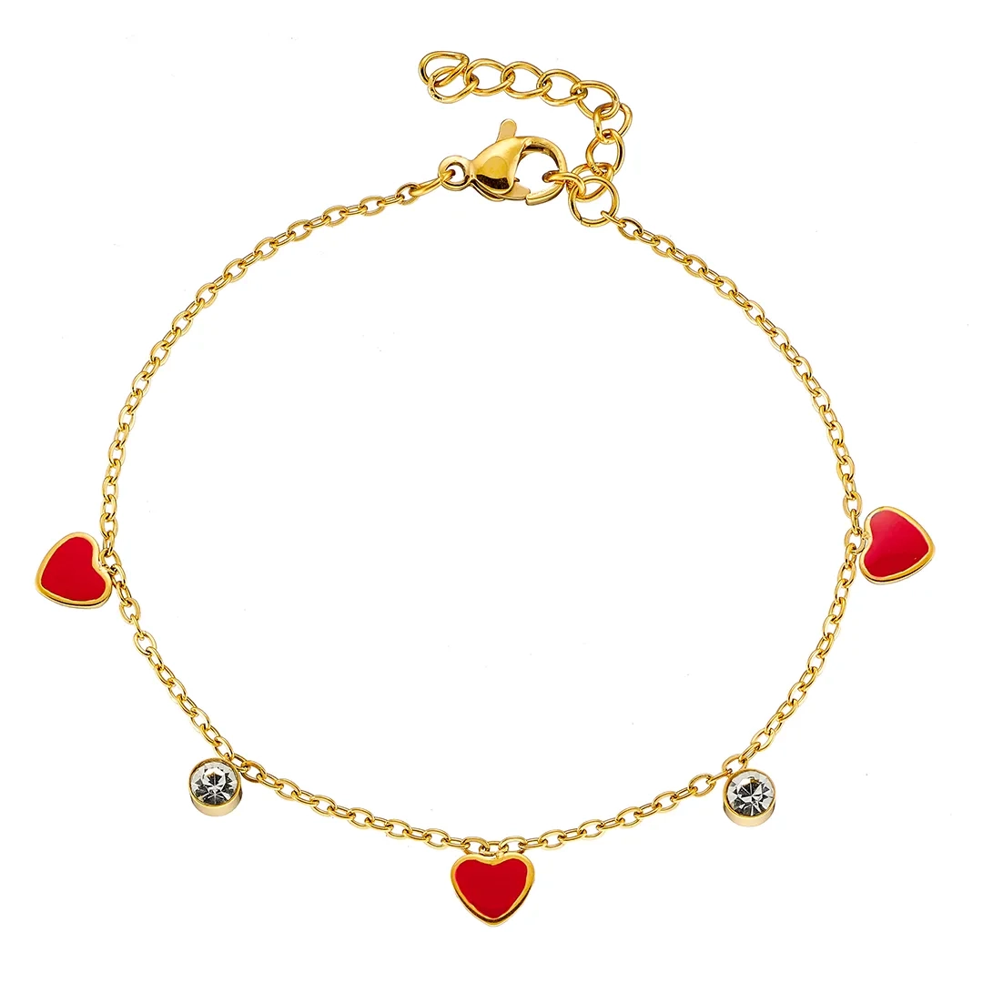 Oxzen γυναικείο βραχιόλι ατσάλινο με κρεμαστές κόκκινες καρδούλες
