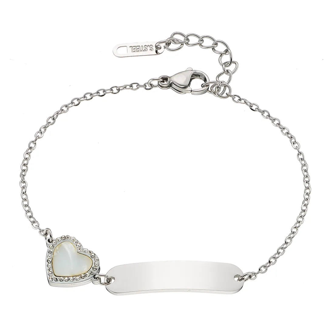 Oxzen γυναικείο βραχιόλι ατσάλινο με λευκή καρδιά