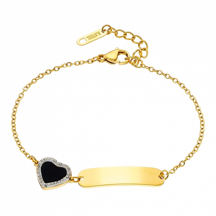 Oxzen γυναικείο βραχιόλι ατσάλινο με μαύρη καρδιά