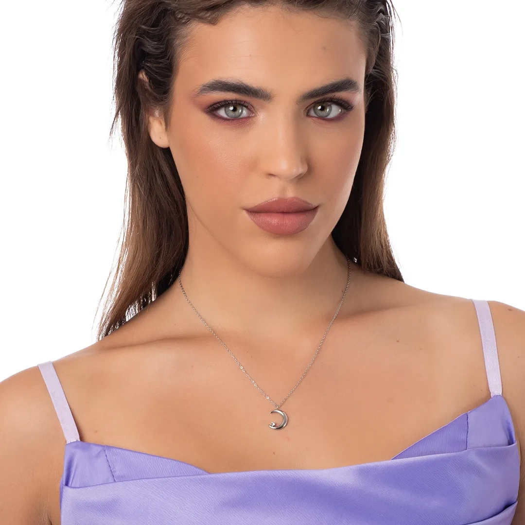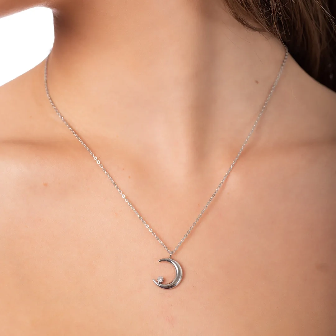 Oxzen κολιέ από ανοξείδωτο ατσάλι, φεγγάρι με ένα λευκό ζιργκόν