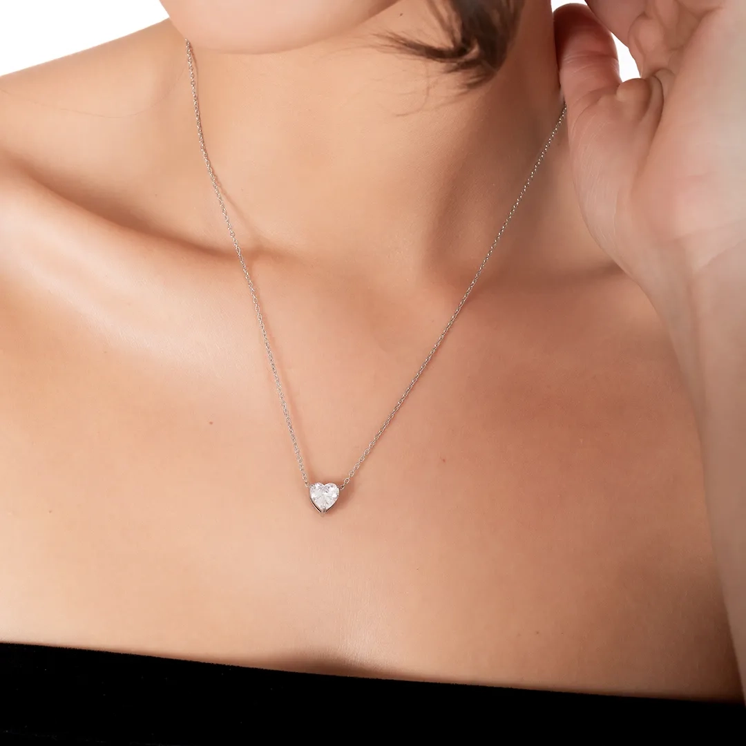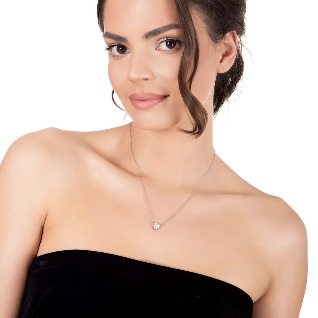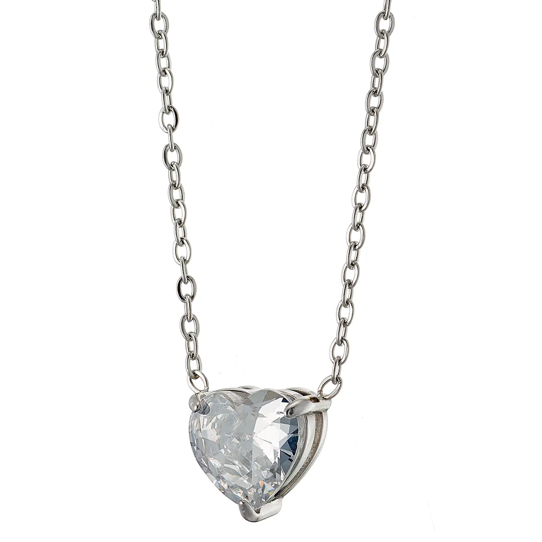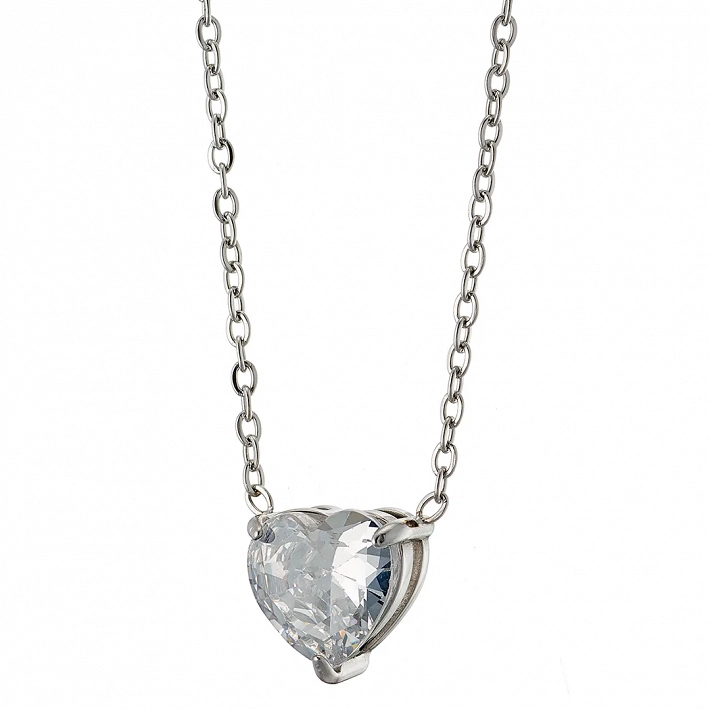 Oxzen κολιέ από ανοξείδωτο ατσάλι καρδούλα με λευκό ζιργκόν