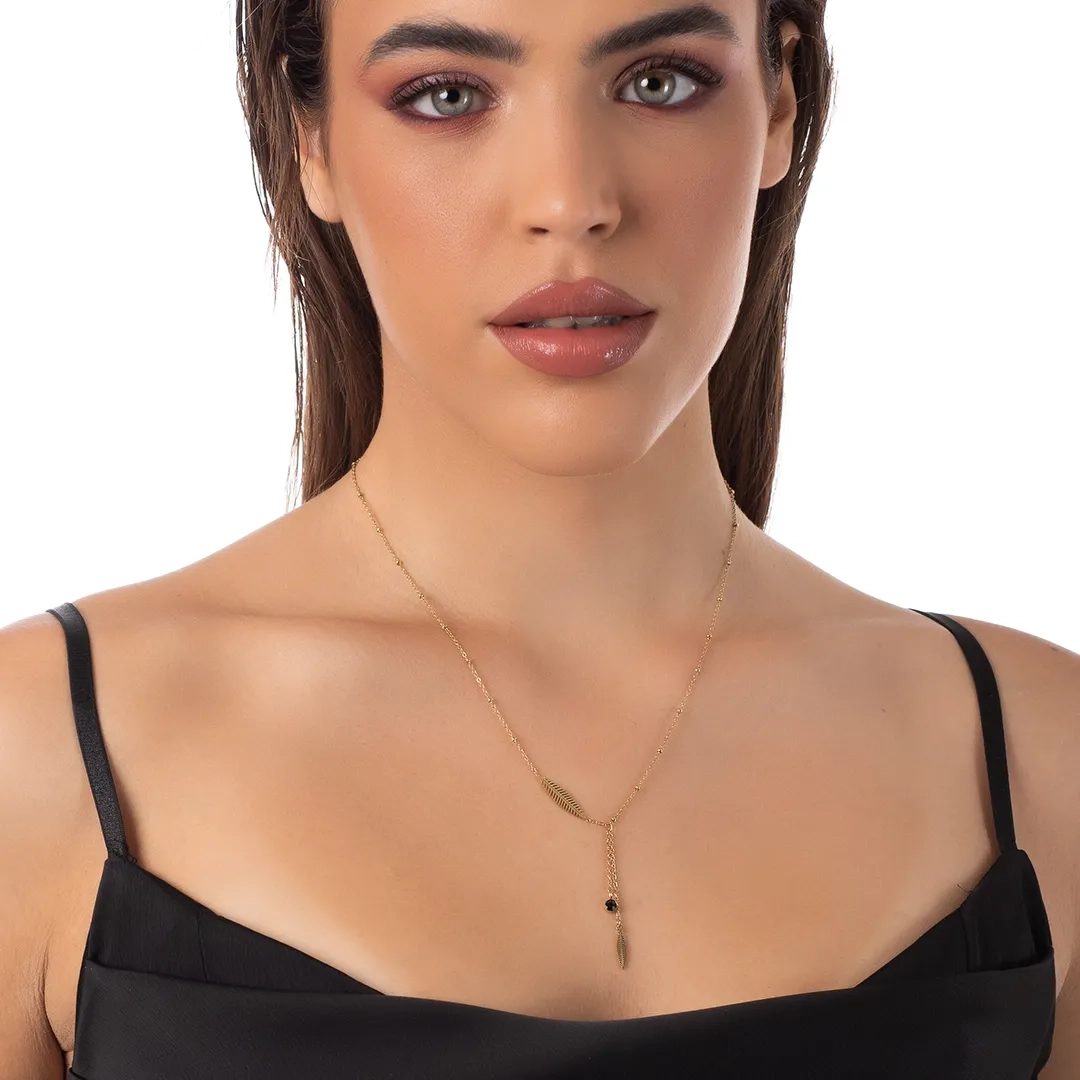 Oxzen κολιέ από ανοξείδωτο ατσάλι με ένα μαύρο ζιργκόν