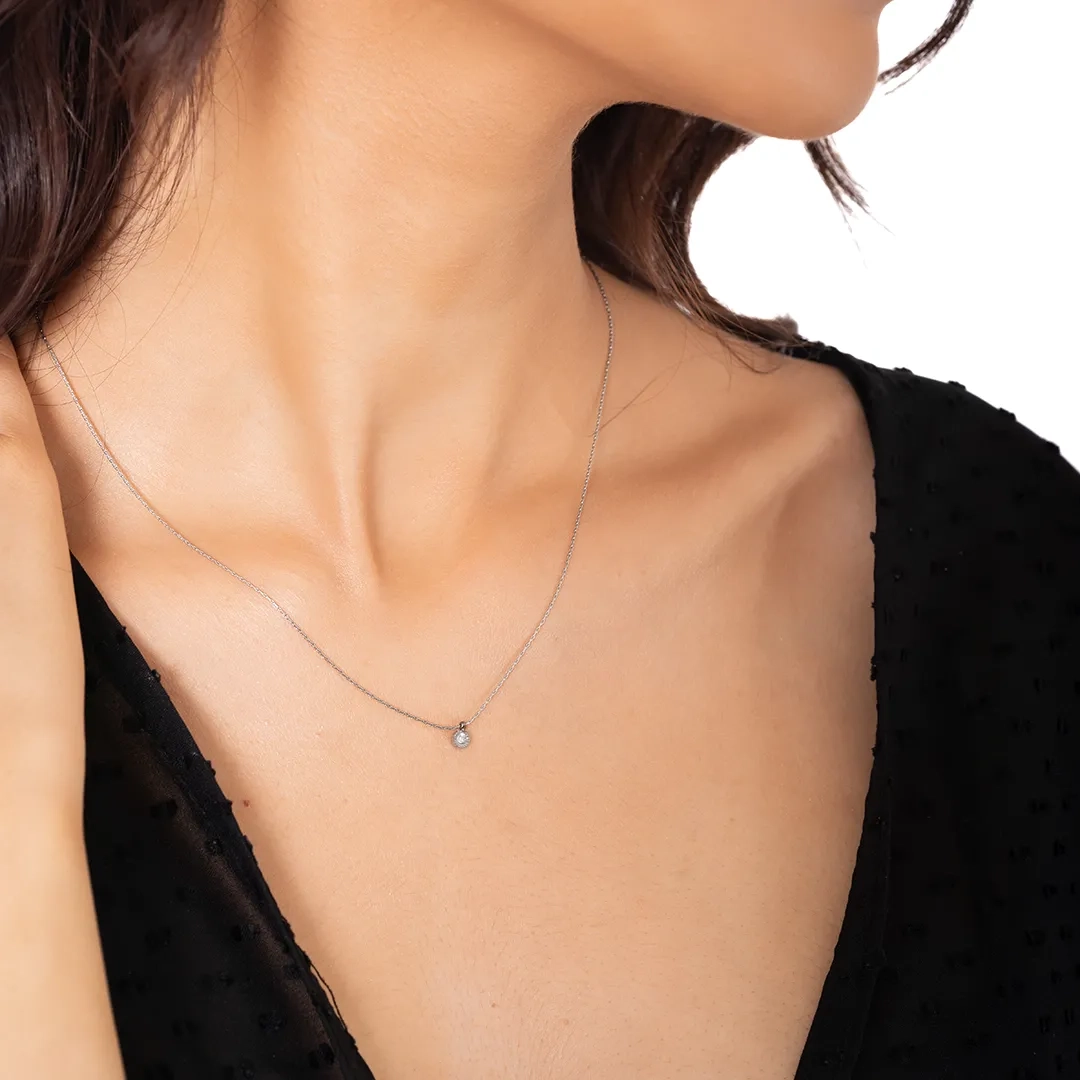 Oxzen κολιέ από ανοξείδωτο ατσάλι με λευκό ζιργκόν