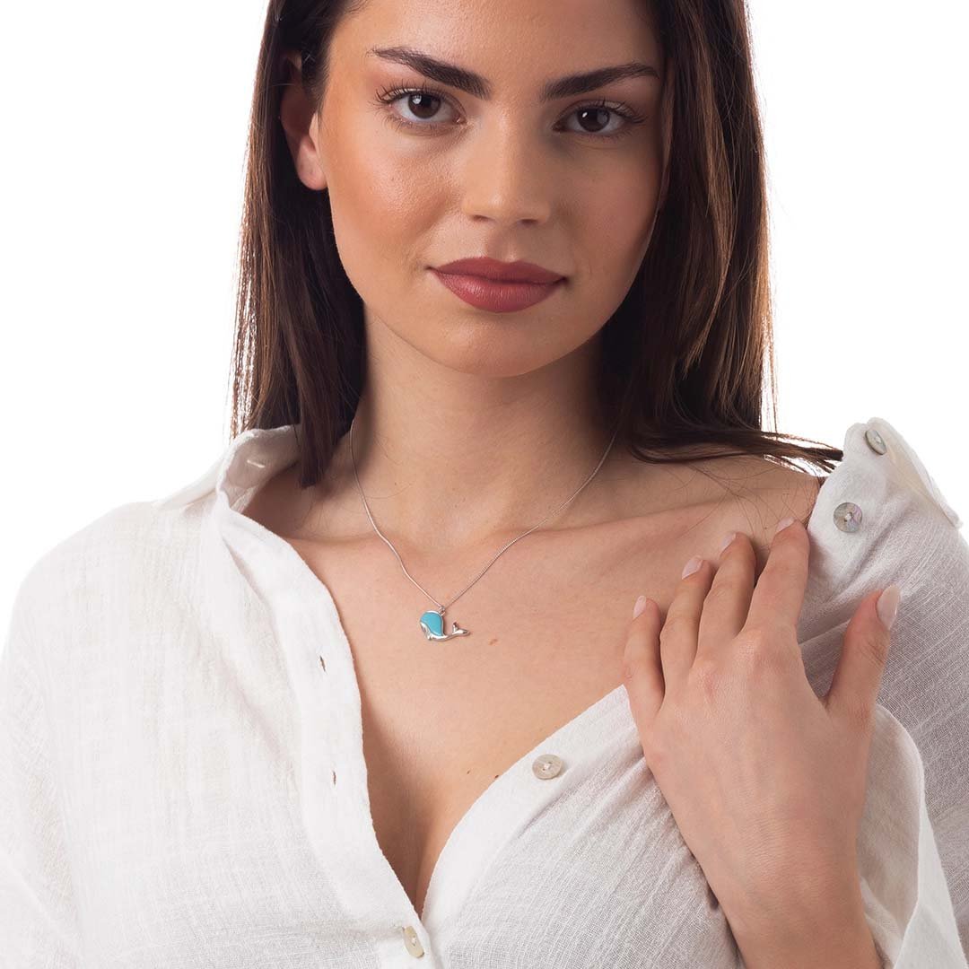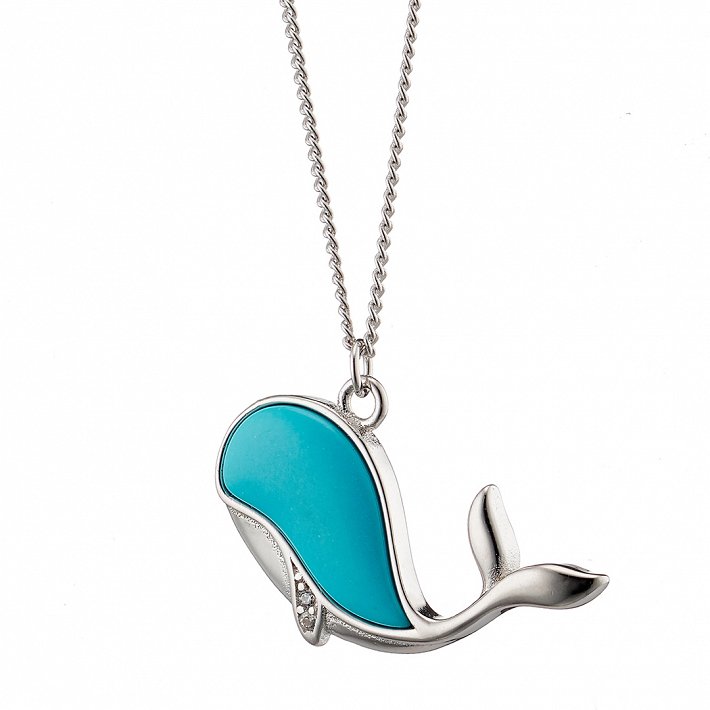 Oxzen κολιέ από ασήμι επιπλατινωμένο φάλαινα με ορυκτή πέτρα