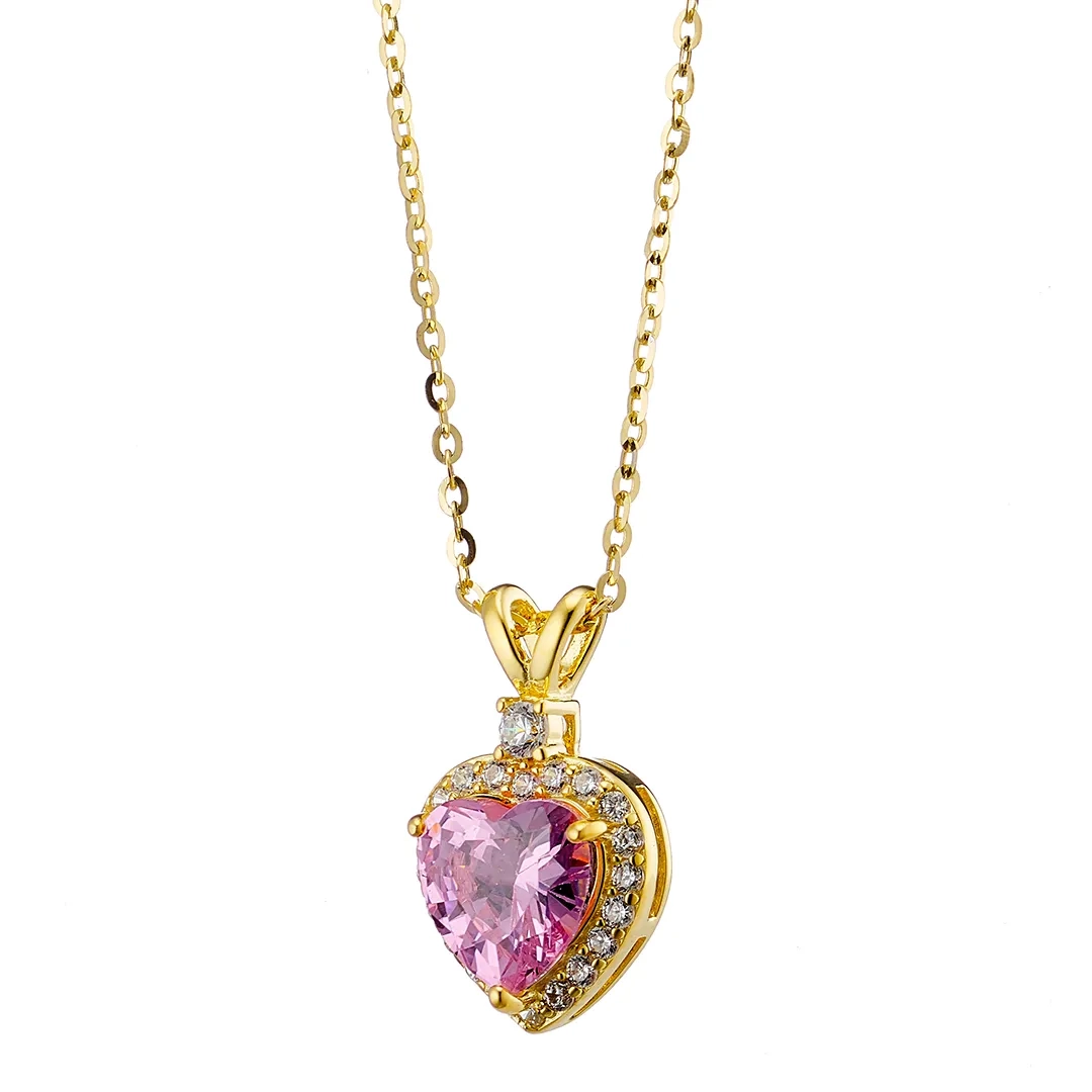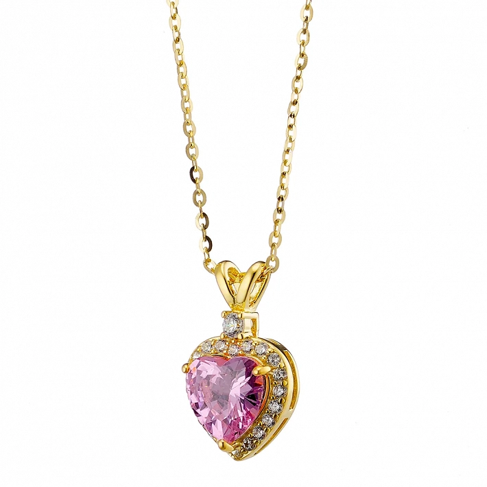 Oxzen κολιέ από ασήμι επιπλατινωμένο, καρδιά με λευκά ζιργκόν
