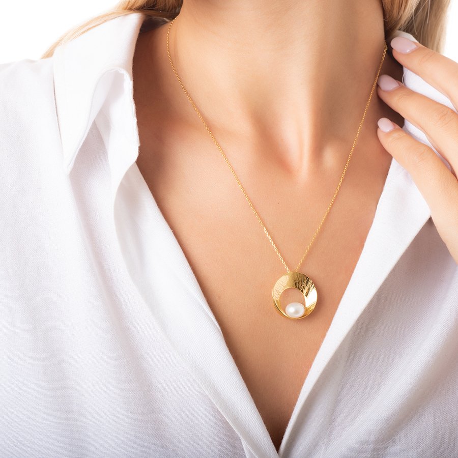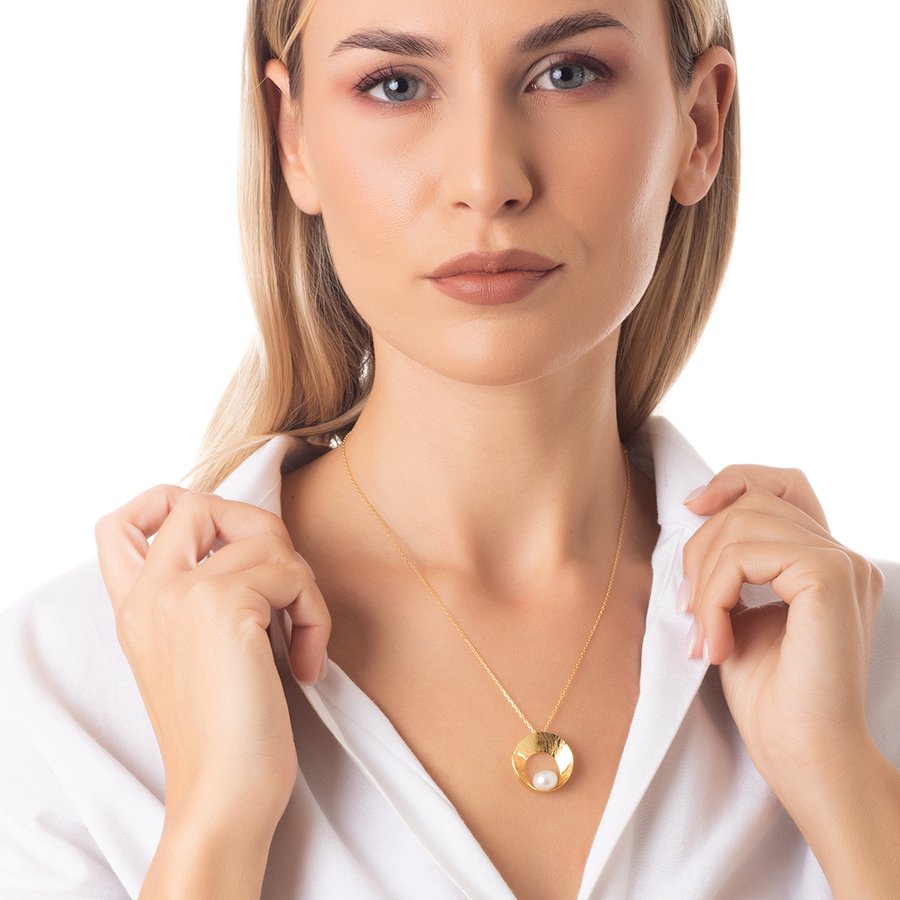 Oxzen κολιέ ασημένιο χειροποίητο με ακατέργαστο μαργαριτάρι
