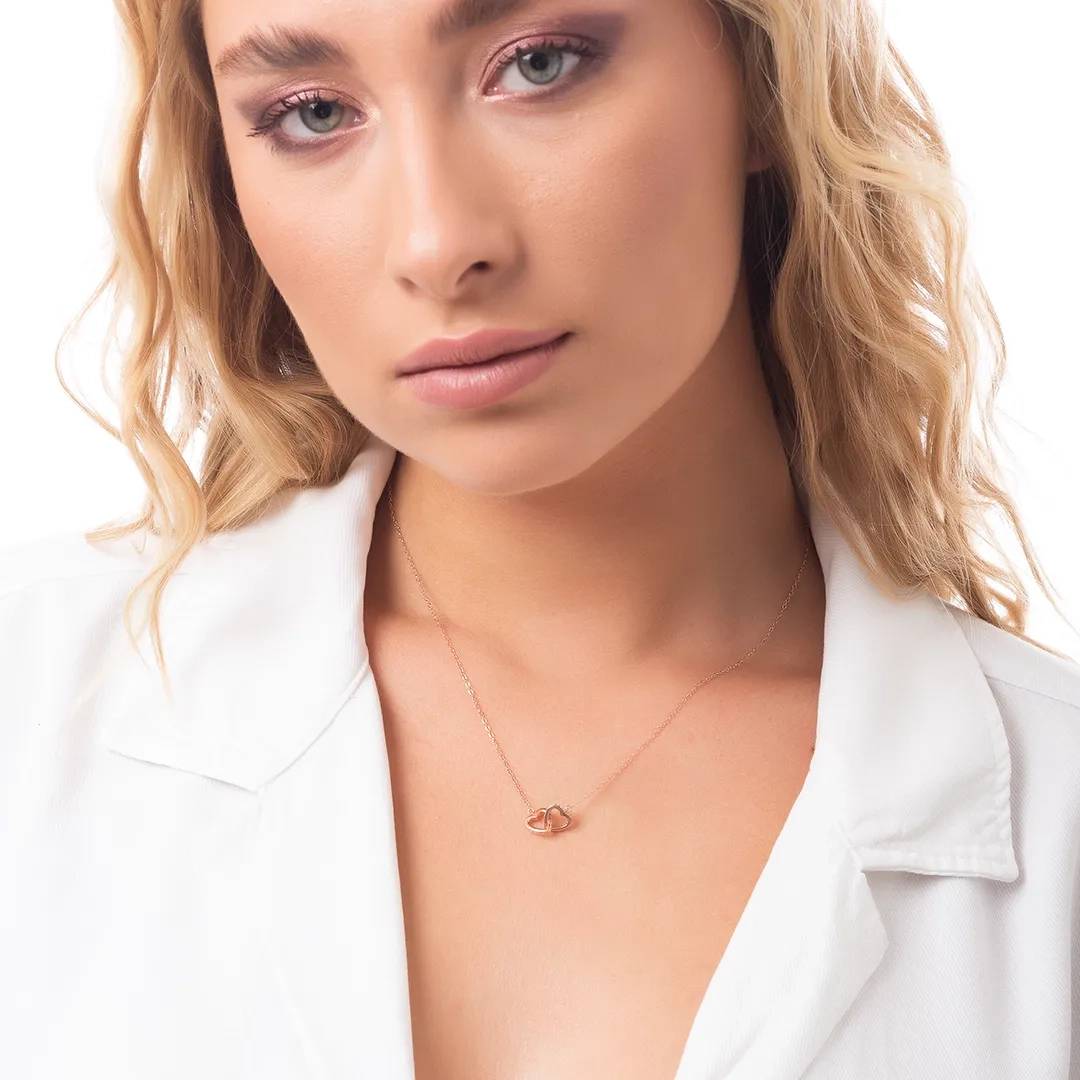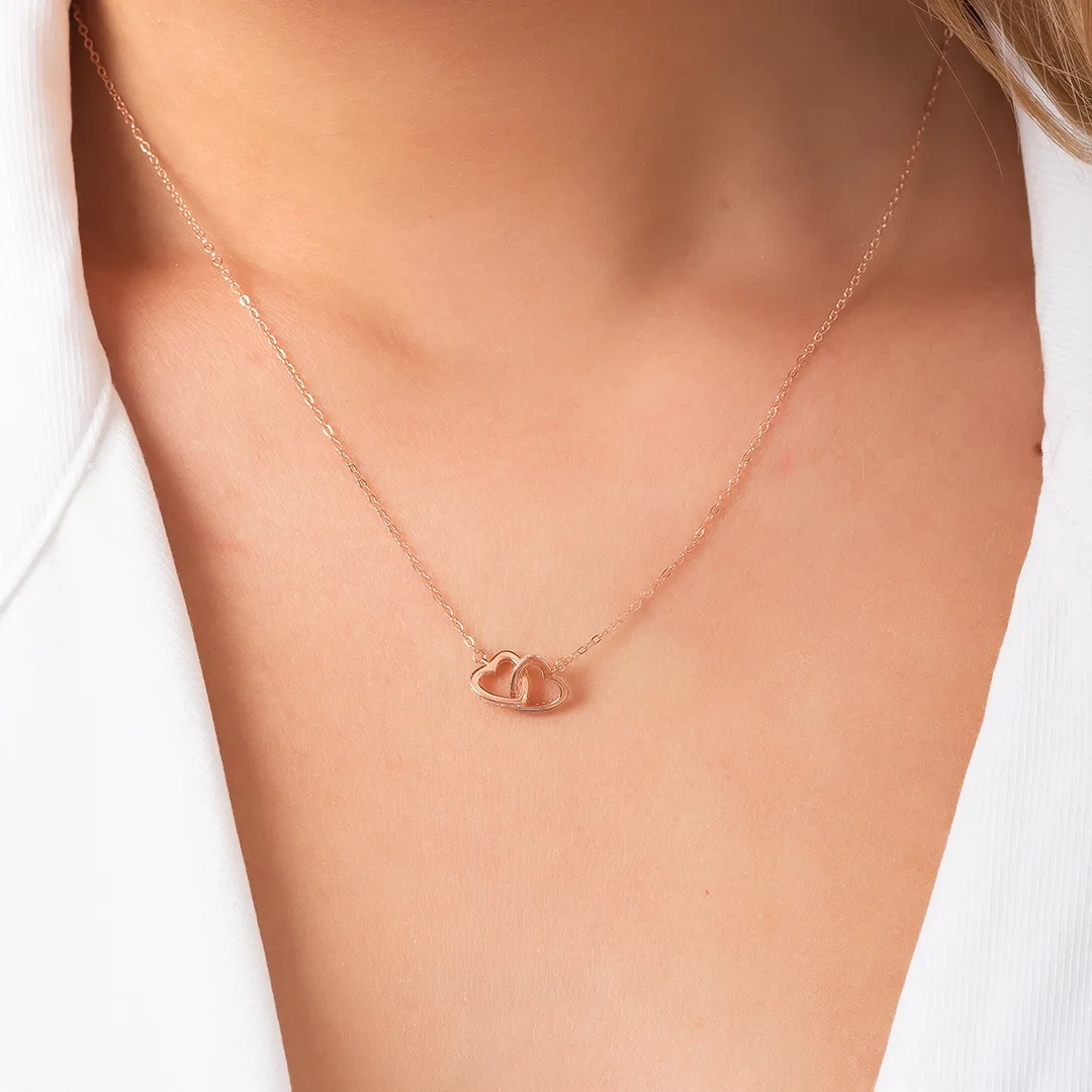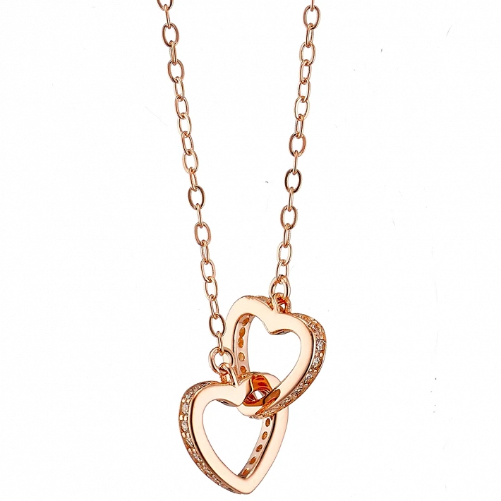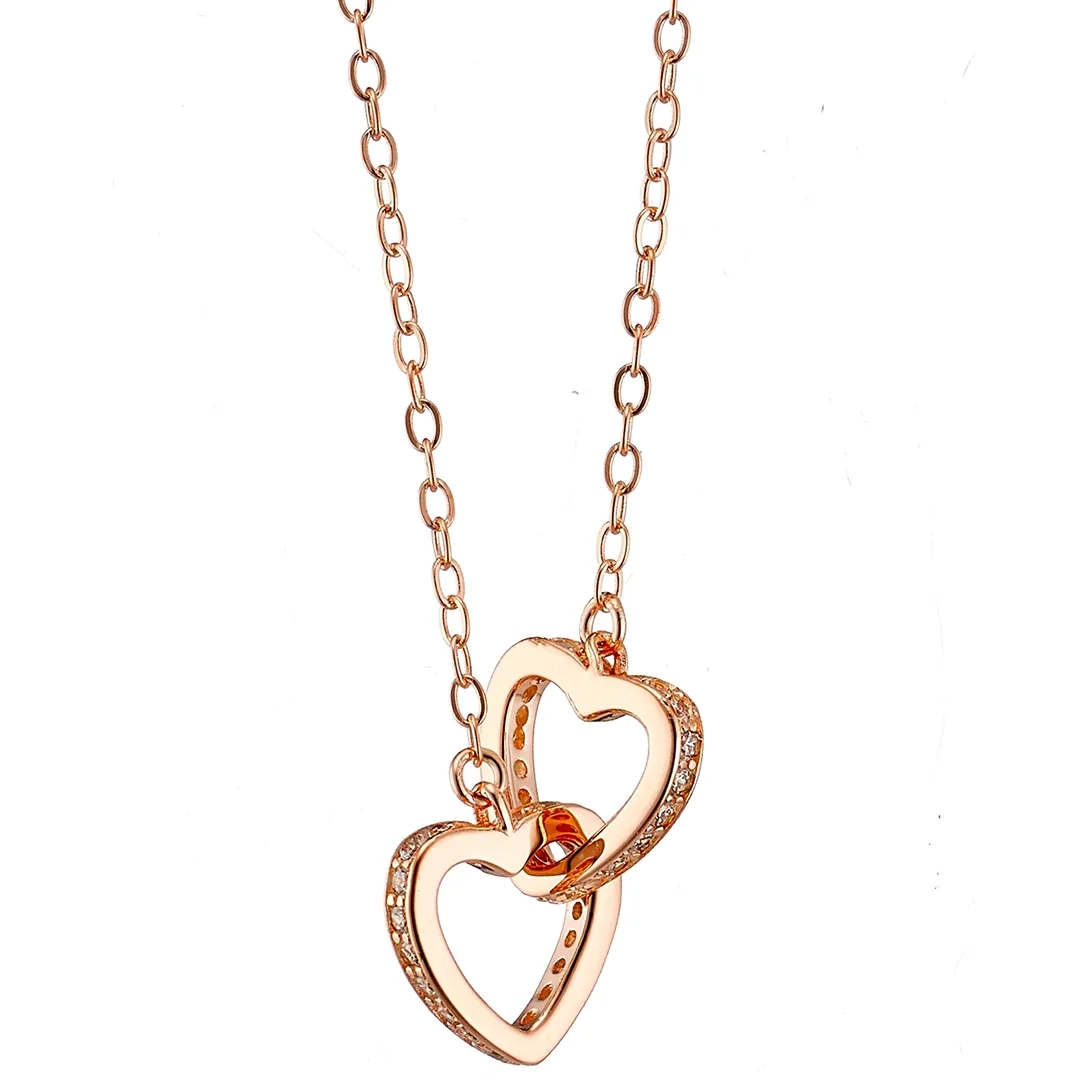 Oxzen κολιέ ασημένιο διπλή καρδιά ενωμένη με λευκά ζιργκόν