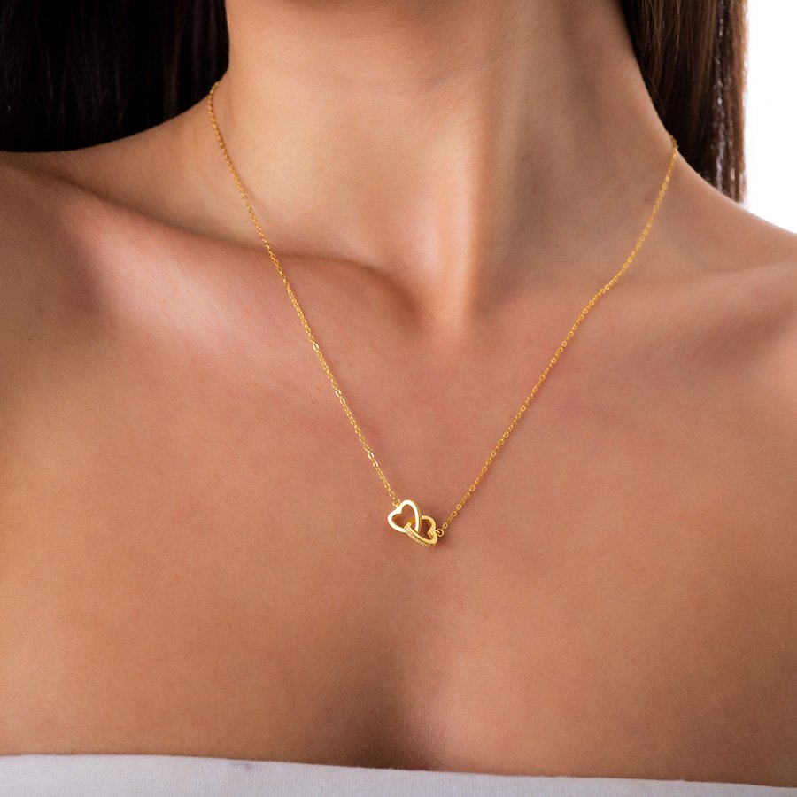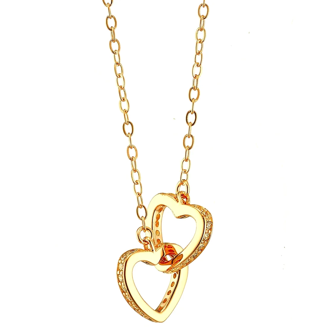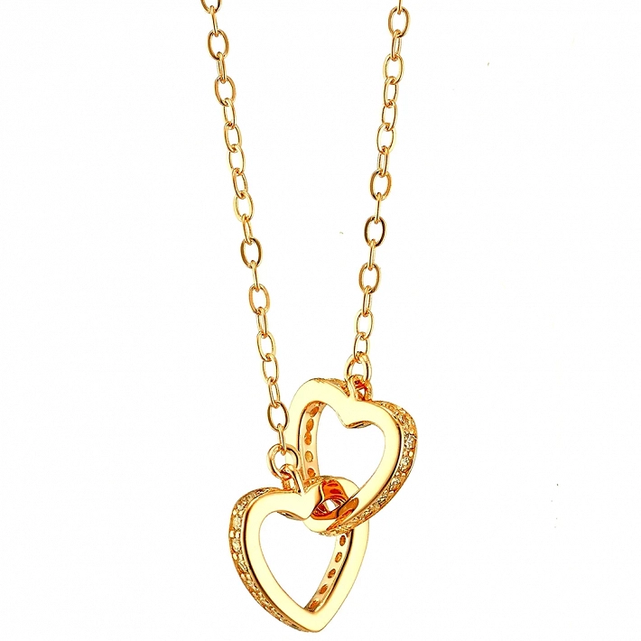 Oxzen κολιέ ασημένιο διπλή καρδιά ενωμένη με λευκά ζιργκόν