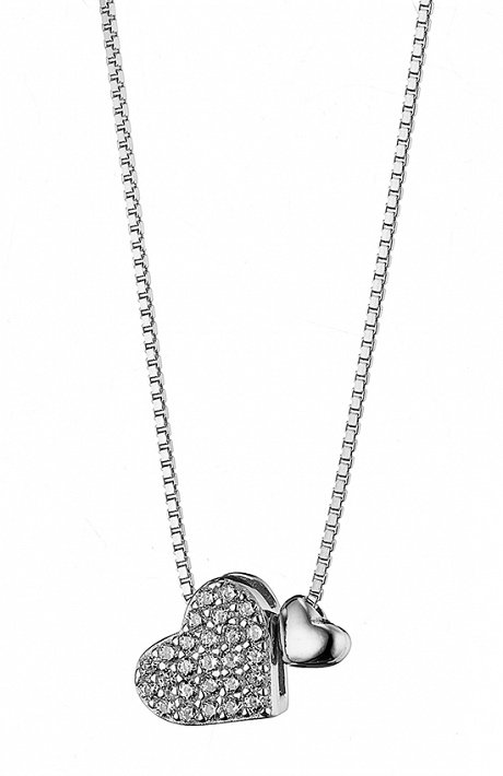 Oxzen κολιέ ασημένιο διπλή καρδιά με λευκά ζιργκόν