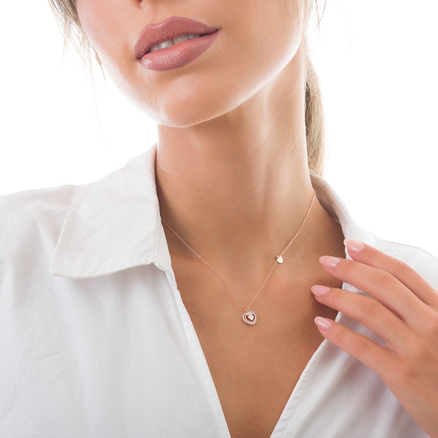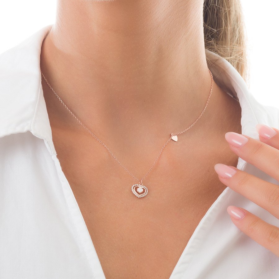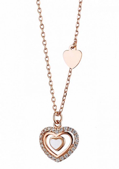Oxzen κολιέ ασημένιο επιπλατινωμένο καρδιά λεπτή με λευκά ζιργκόν