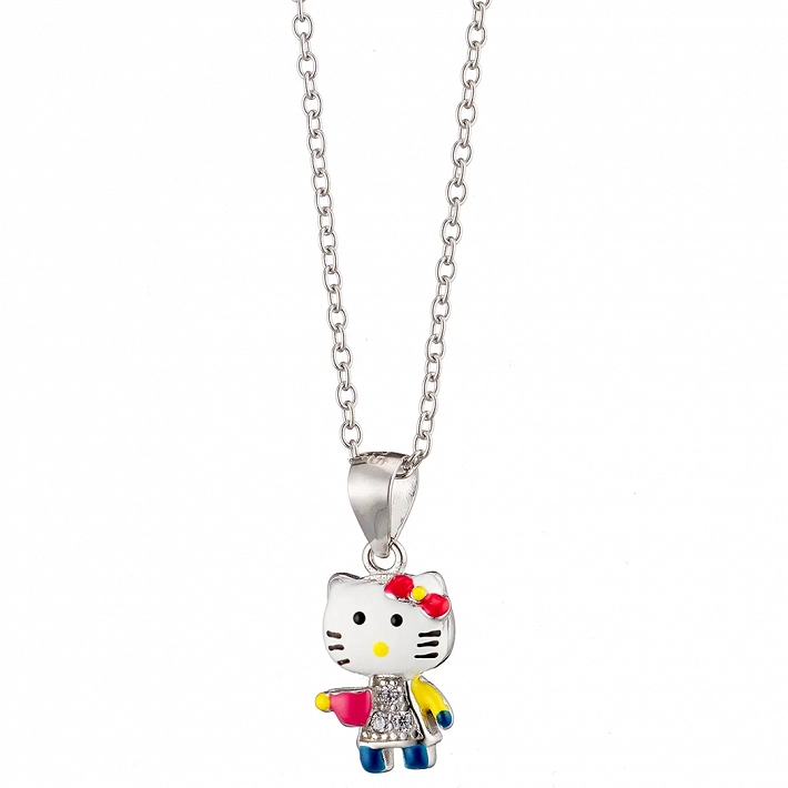 Oxzen κολιέ ασημένιο επιπλατινωμένο παιδικό-εφηβικό Hello Kitty