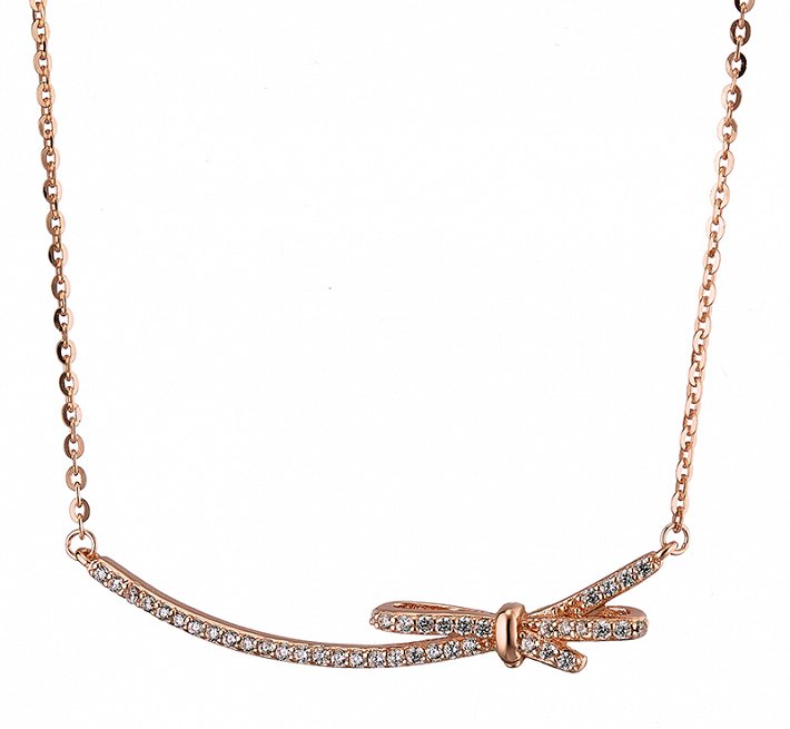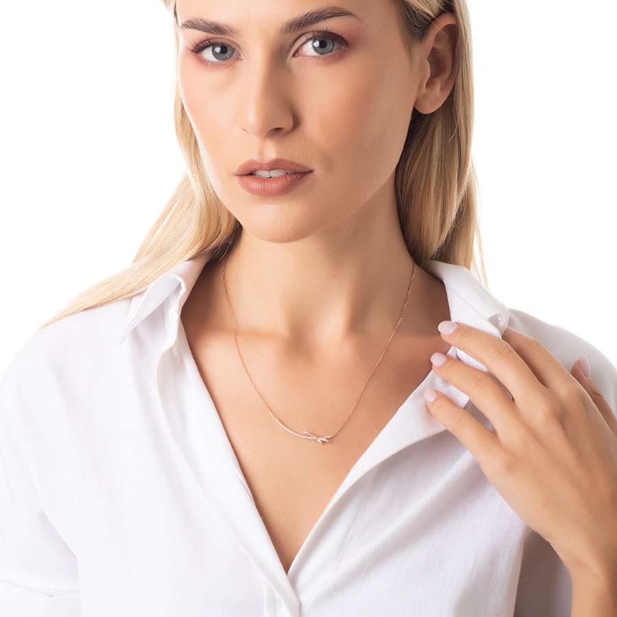 Oxzen κολιέ ασημένιο φιόγκος με λευκά ζιργκόν