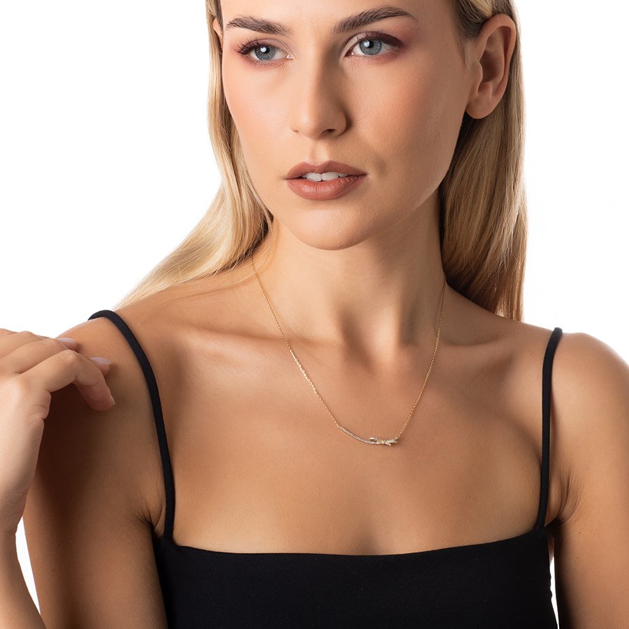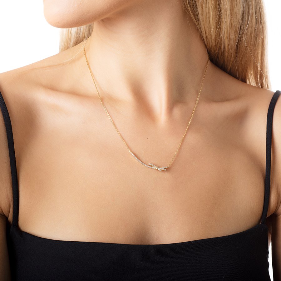 Oxzen κολιέ ασημένιο φιόγκος με λευκά ζιργκόν