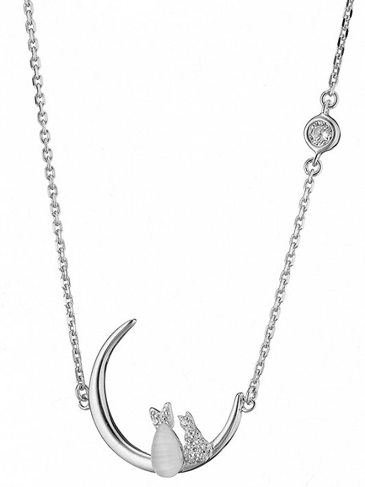 Oxzen κολιέ ασημένιο μισοφέγγαρο με γατούλα