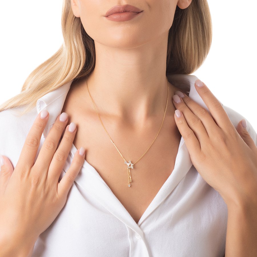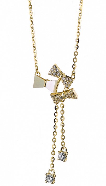 Oxzen κολιέ ασημένιο γραβάτα με φιογκάκια από φίλντισι και ζιργκόν