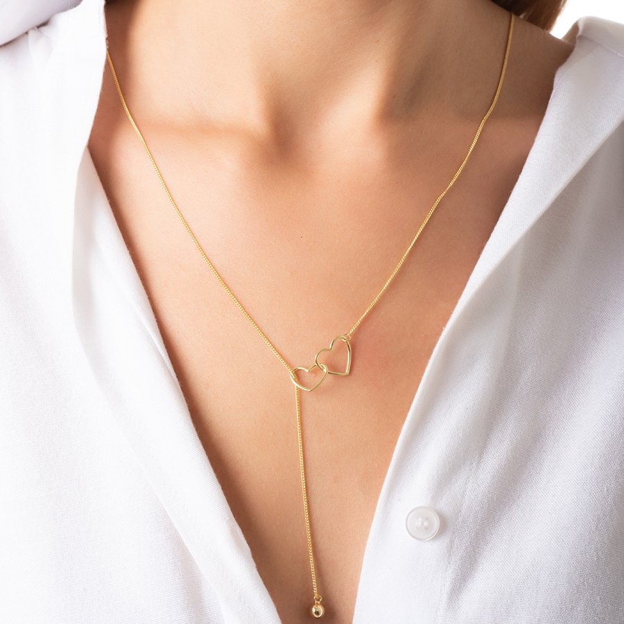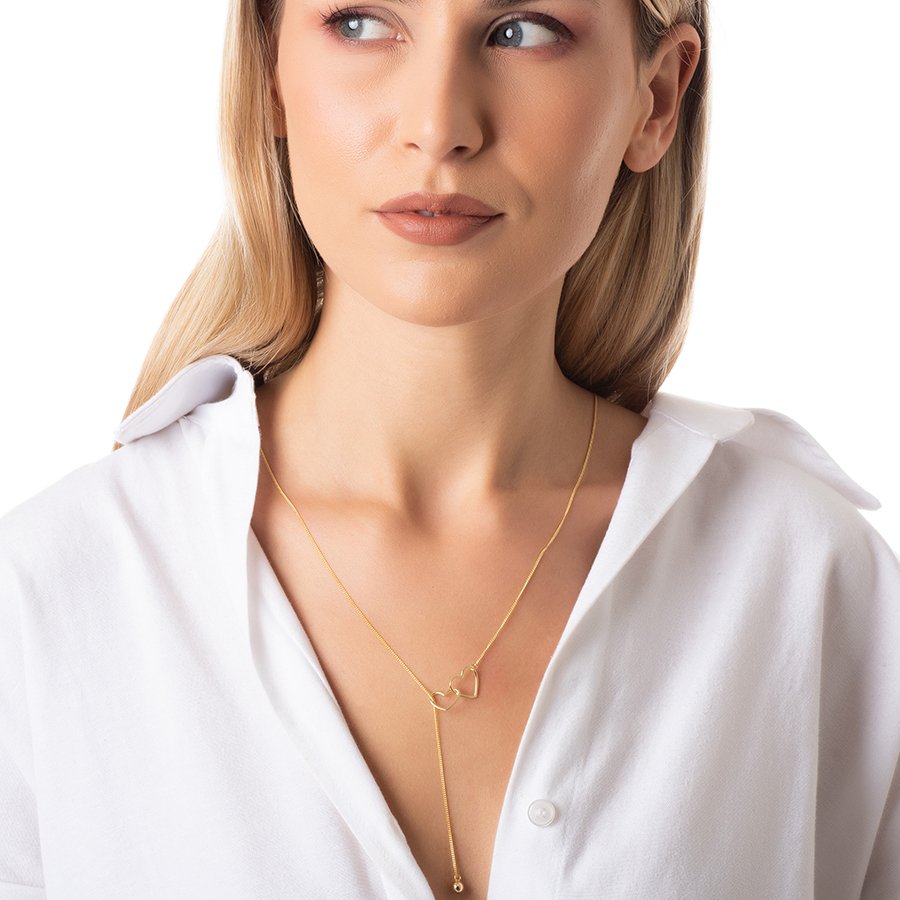 Oxzen κολιέ ασημένιο γραβάτα με καρδούλες