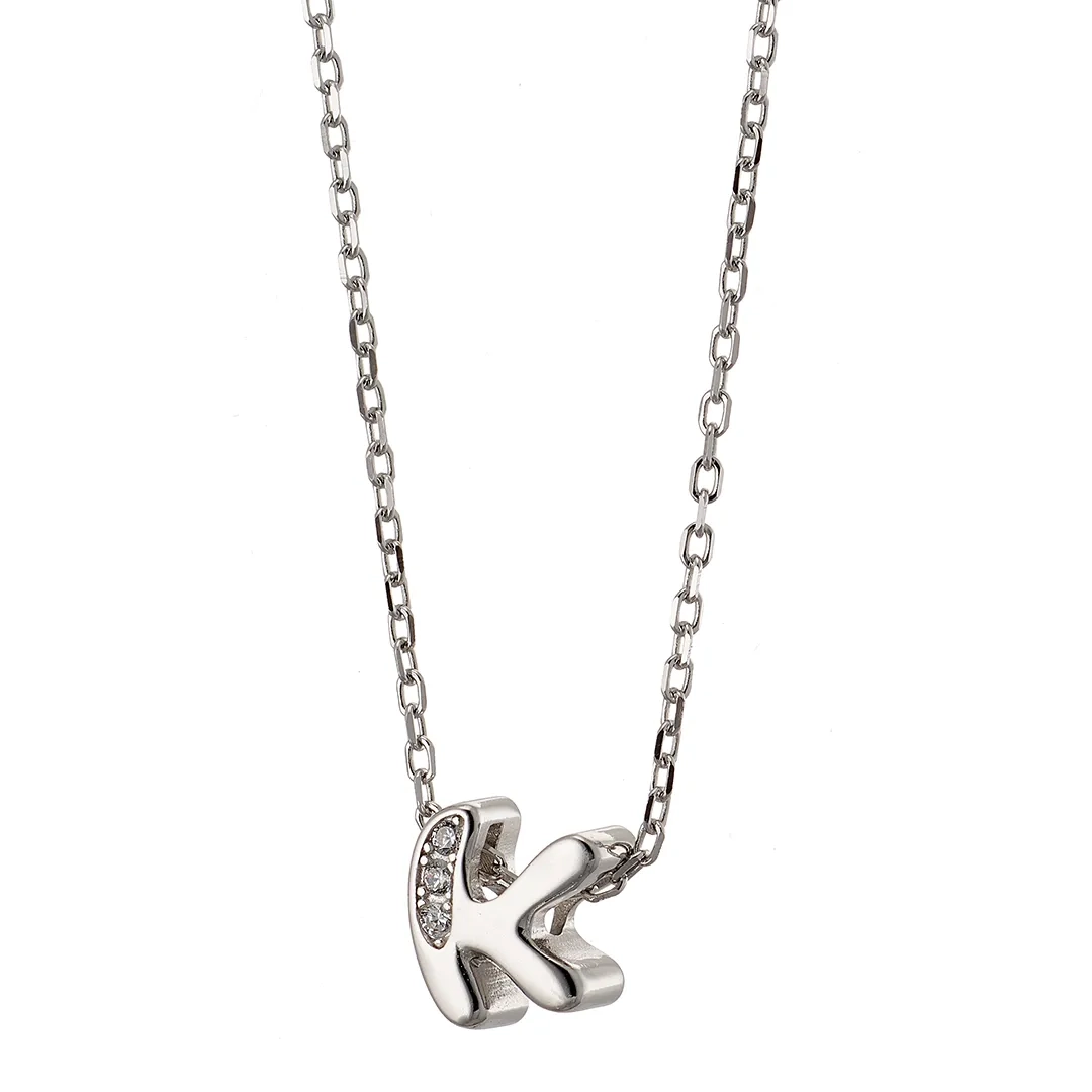 Oxzen κολιέ ασημένιο, καλλιγραφικό μονόγραμμα Κ
