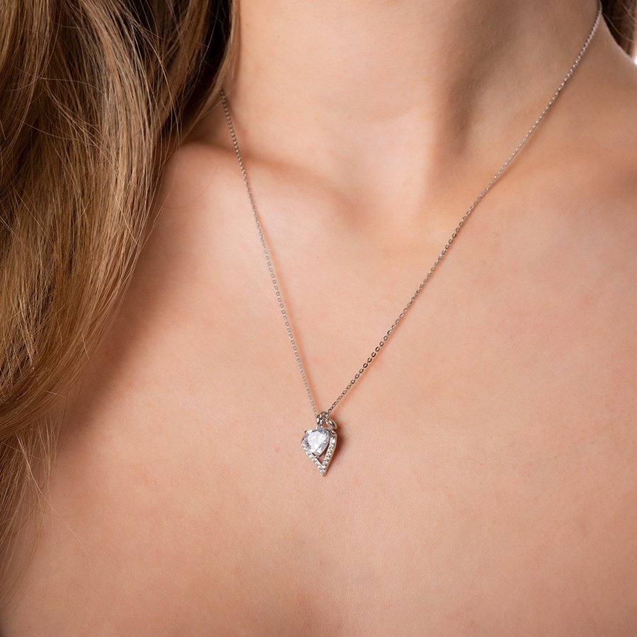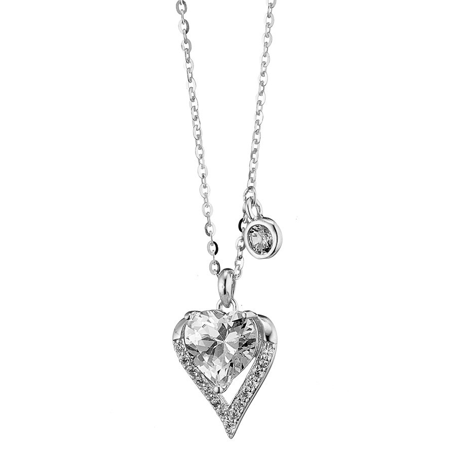 Oxzen κολιέ ασημένιο καρδιά με λευκό ζιργκόν
