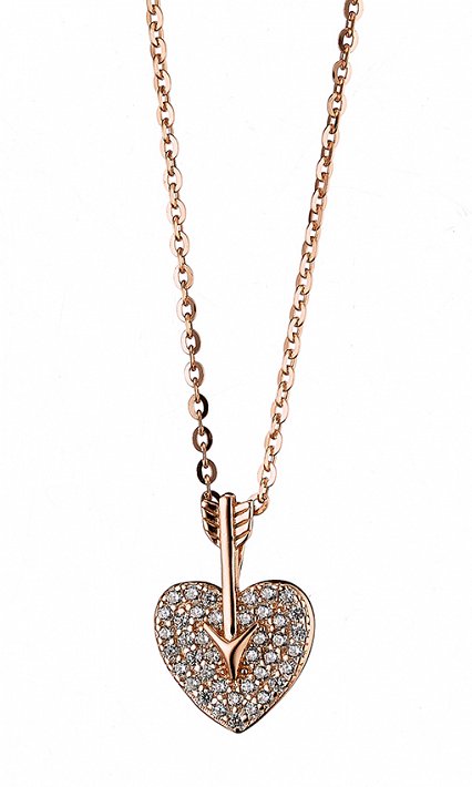 Oxzen κολιέ ασημένιο καρδιά με βέλος και λευκά ζιργκόν