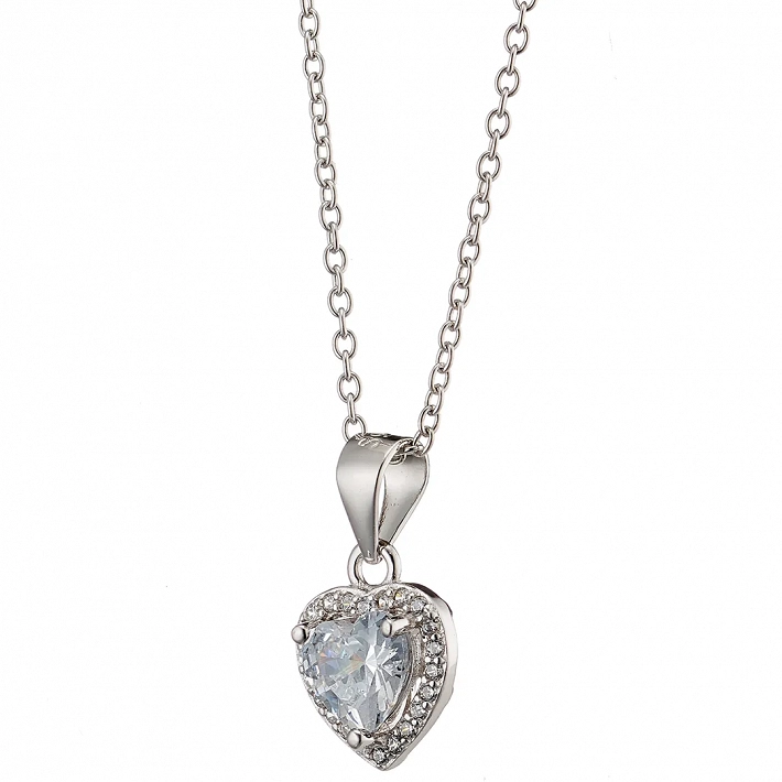 Oxzen κολιέ ασημένιο καρδούλα με λευκά ζιργκόν