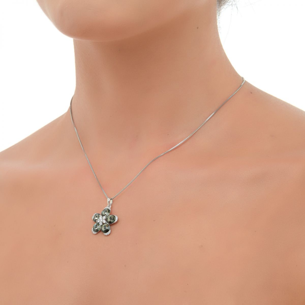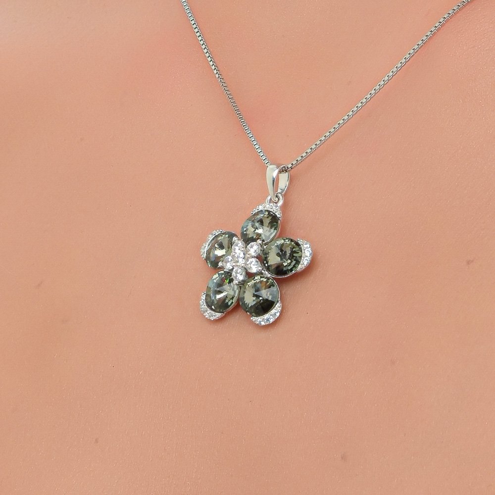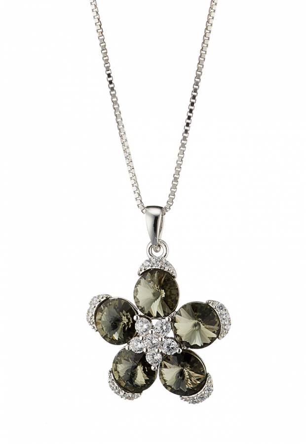 Oxzen κολιέ ασημένιο μαργαρίτα με γκρί κρύσταλλα CZ