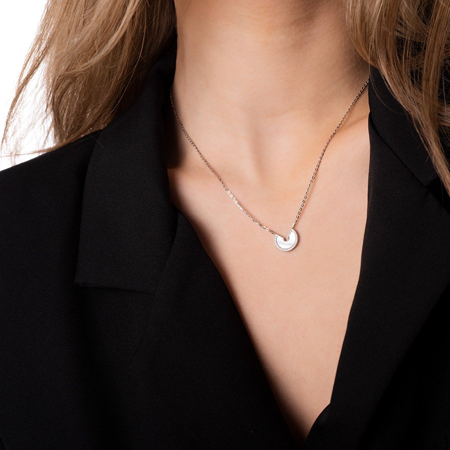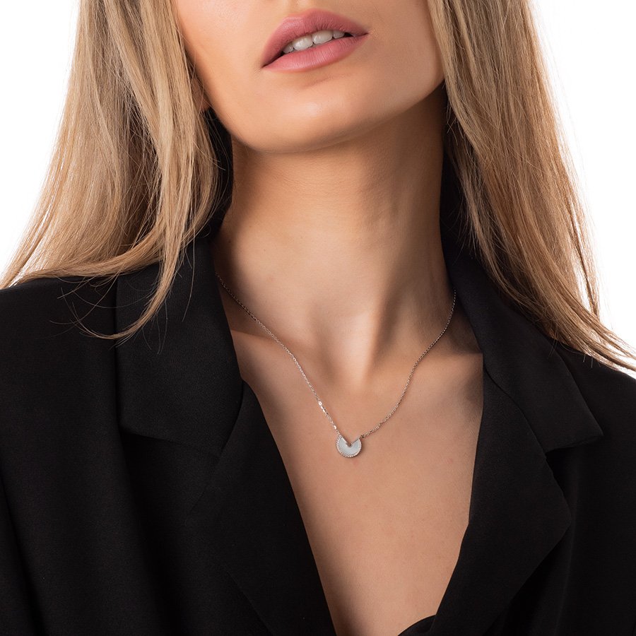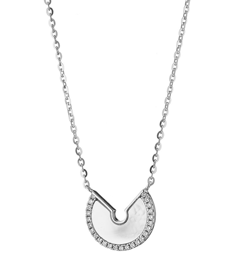 Oxzen κολιέ ασημένιο με φίλντισι και πέτρες ζιργκόν