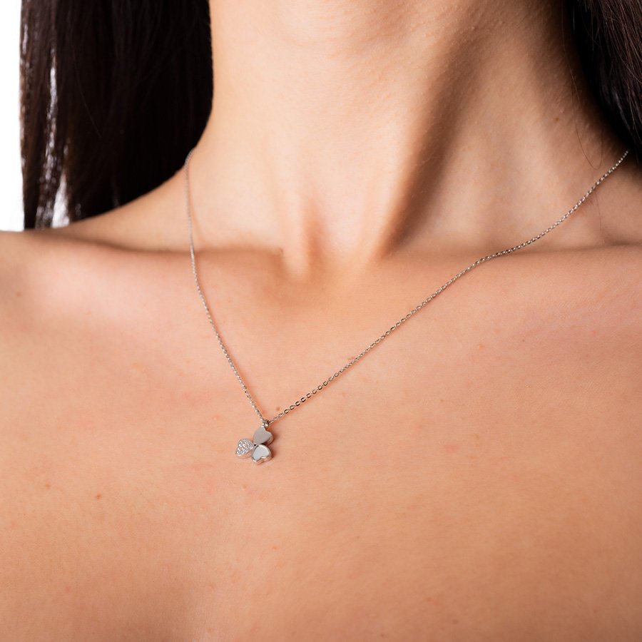 Oxzen κολιέ ασημένιο με φίλντισι και πέτρες ζιργκόν