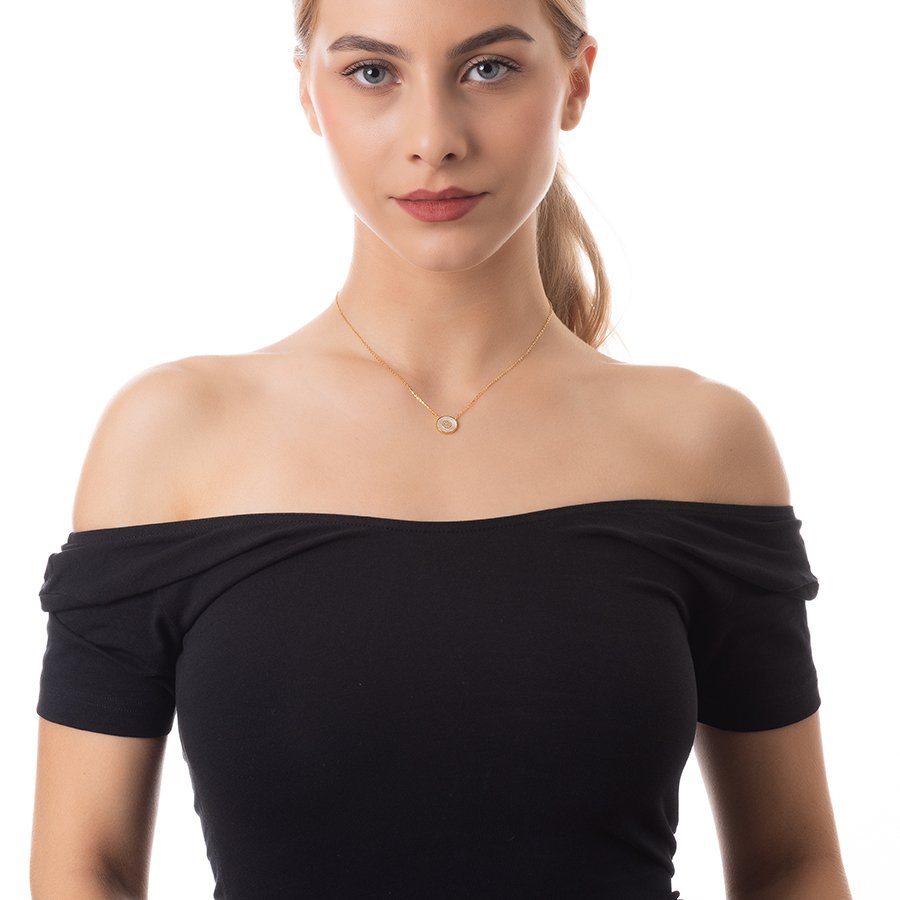 Oxzen κολιέ ασημένιο με φίλντισι και πέτρες ζιργκόν