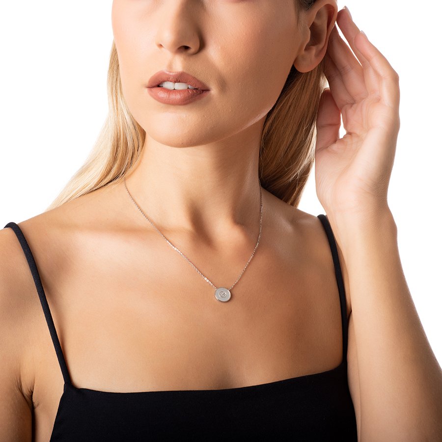 Oxzen κολιέ ασημένιο με φίλντισι και πέτρες ζιργκόν