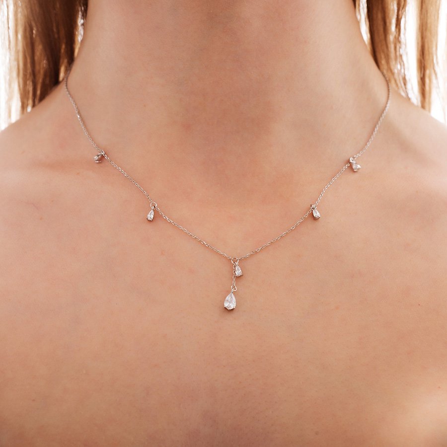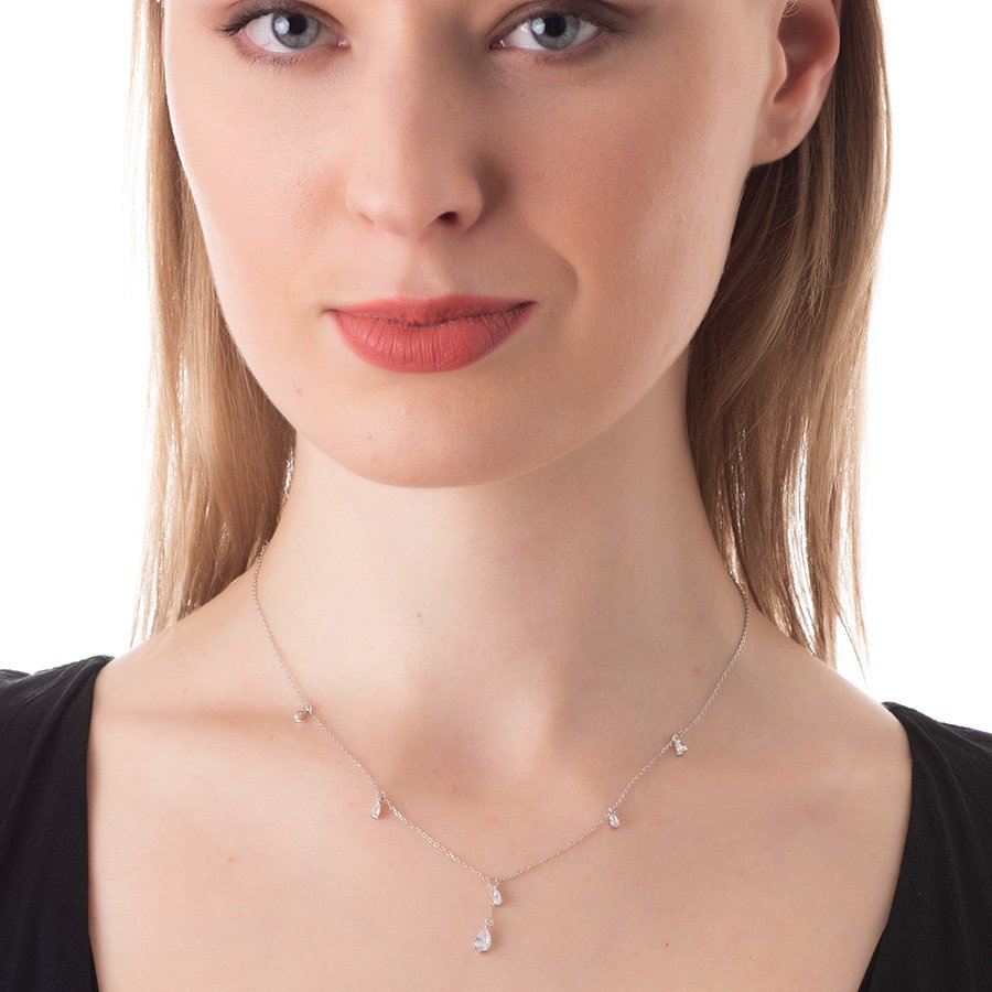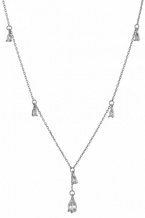 Oxzen κολιέ ασημένιο με κρεμαστά λευκά ζιργκόν