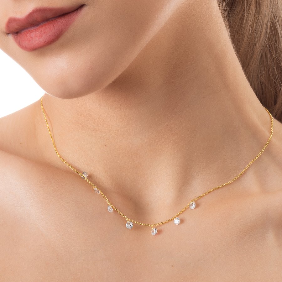 Oxzen κολιέ ασημένιο με λευκές πέτρες ζιργκόν