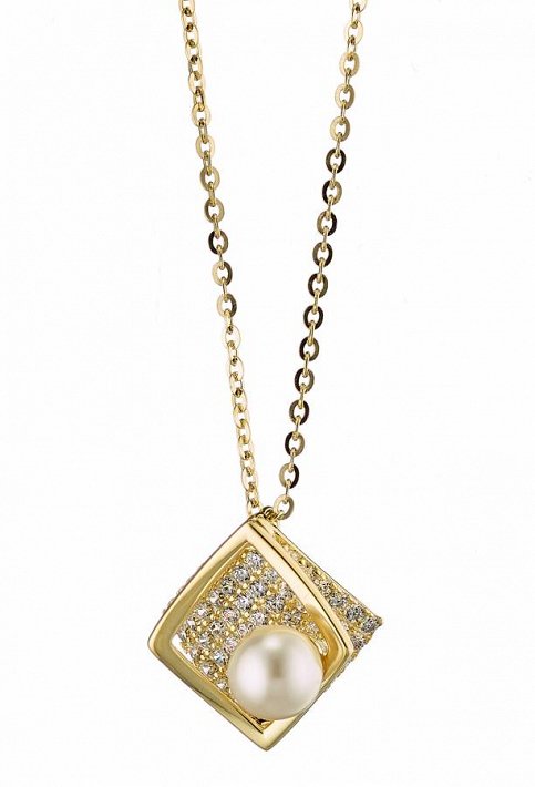 Oxzen κολιέ ασημένιο με πέρλα Majorica και λευκά ζιργκόν
