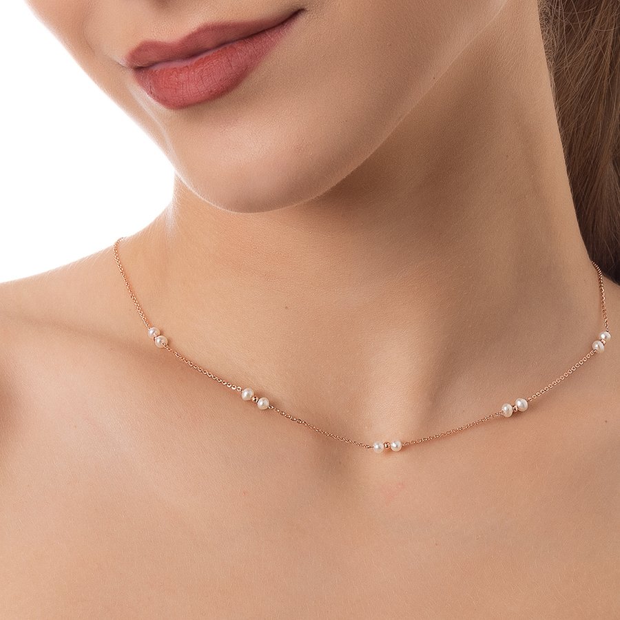 Oxzen κολιέ ασημένιο με πέρλες