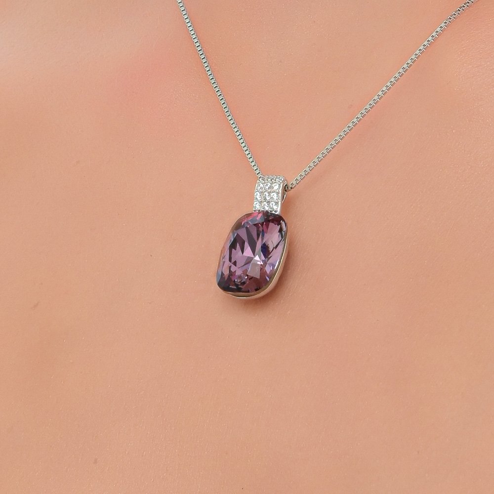 Oxzen κολιέ ασημένιο με πέτρα ζιργκόν