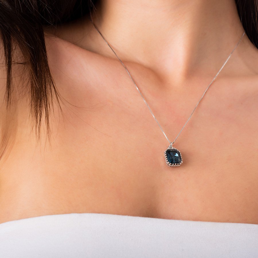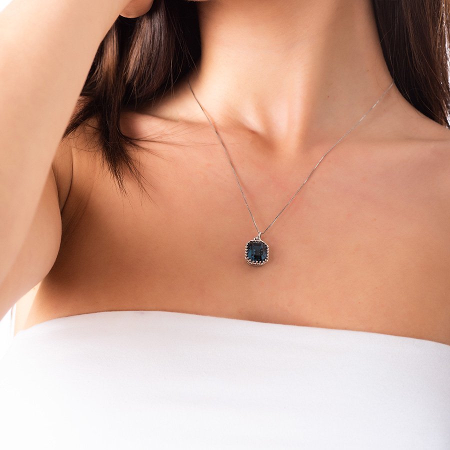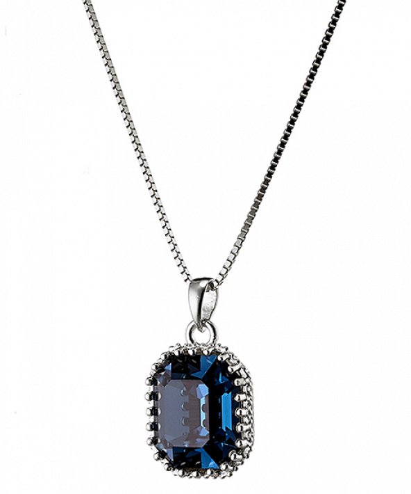 Oxzen κολιέ ασημένιο με τετράγωνη μπλέ πέτρα ζιργκόν