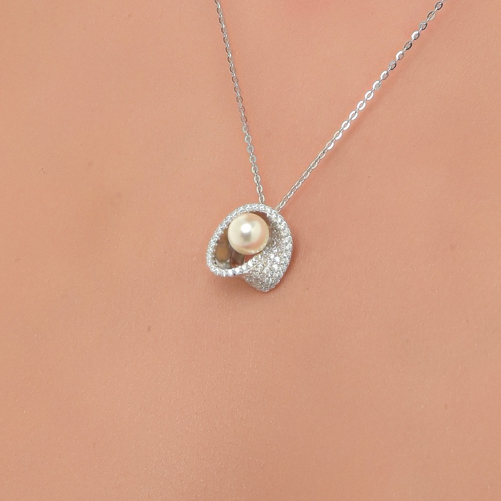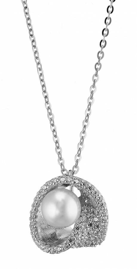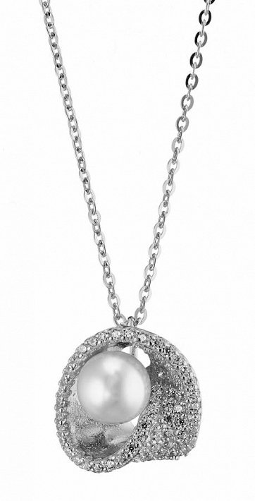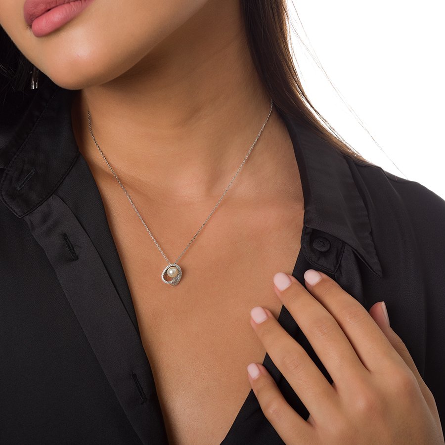 Oxzen κολιέ ασημένιο με ζιργκόν και πέρλα Majorica