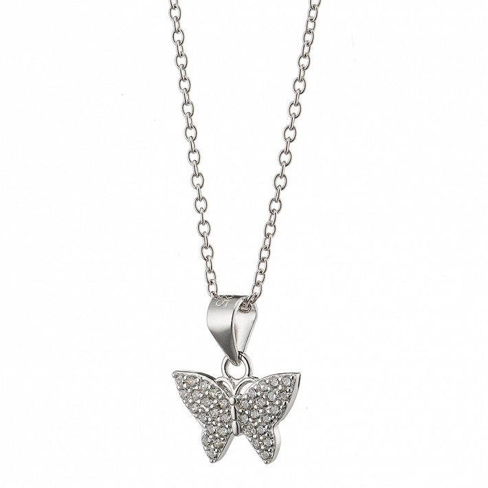 Oxzen κολιέ ασημένιο πεταλούδα με λευκά ζιργκόν