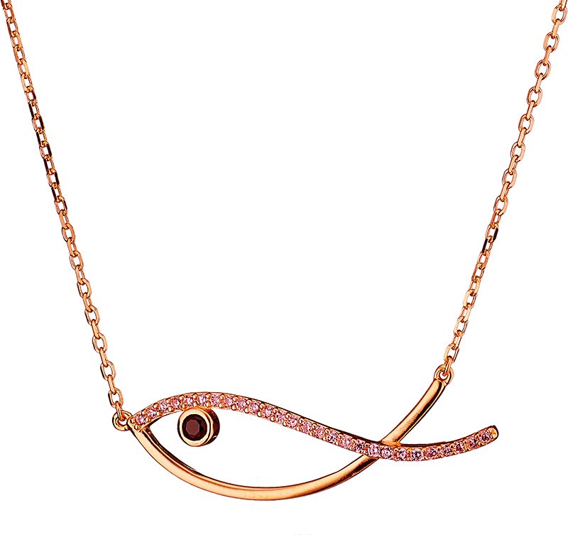 Oxzen κολιέ ασημένιο ψαράκι με πέτρες ζιργκόν