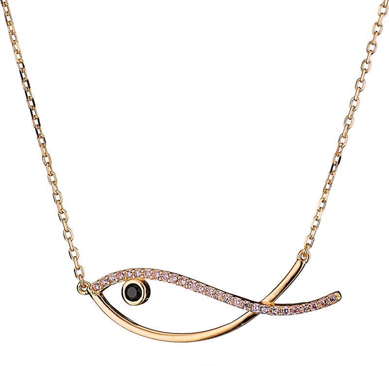 Oxzen κολιέ ασημένιο ψαράκι με πέτρες ζιργκόν