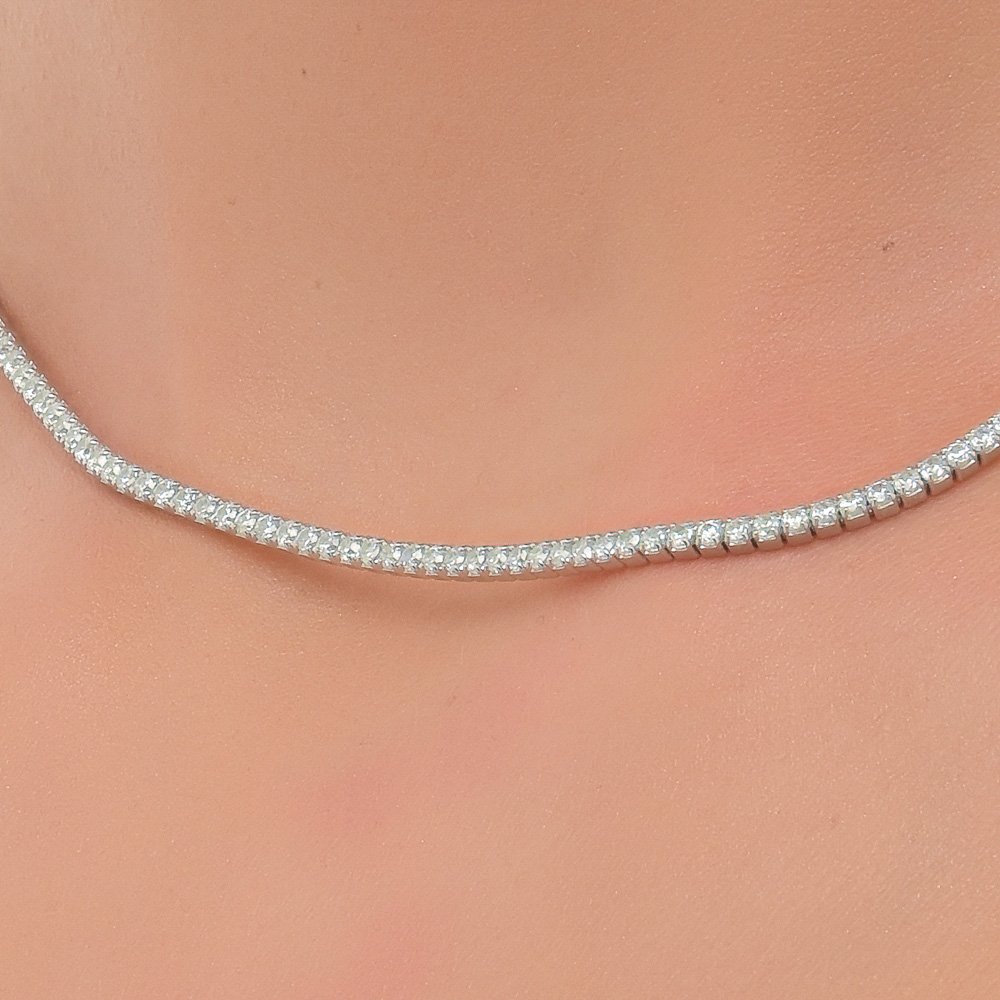 Oxzen κολιέ ασημένιο ριβιέρα λαιμού με λευκά ζιργκόν
