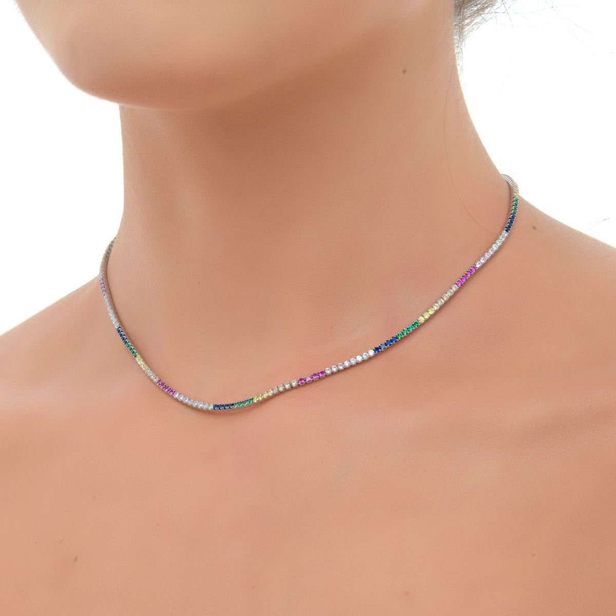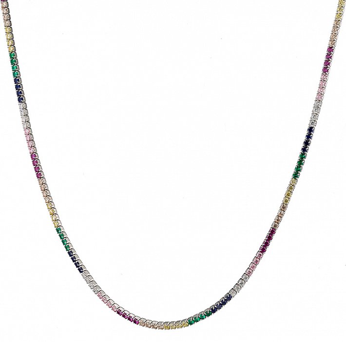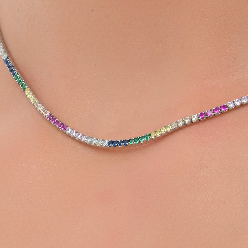 Oxzen κολιέ ασημένιο ριβιέρα λαιμού με πολύχρωμα ζιργκόν