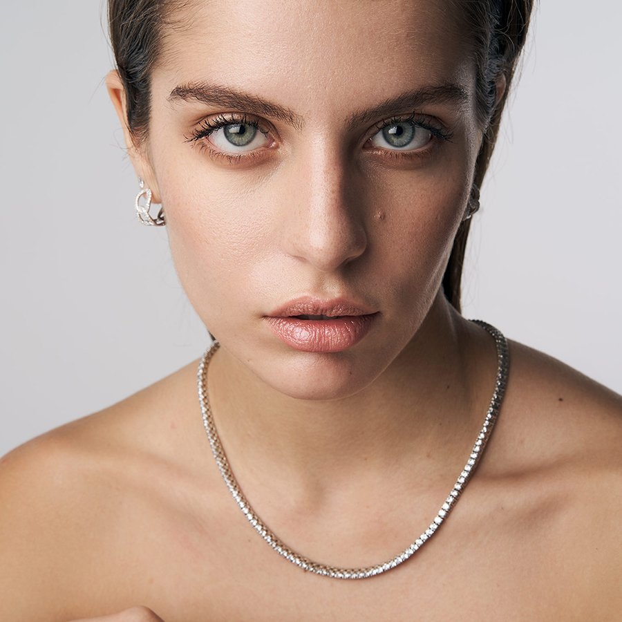 Oxzen κολιέ ασημένιο ριβιέρα με πέτρες ζιργκόν