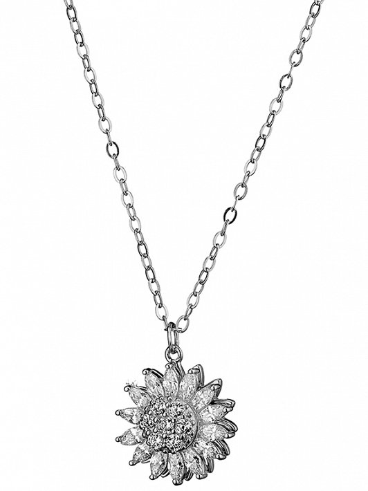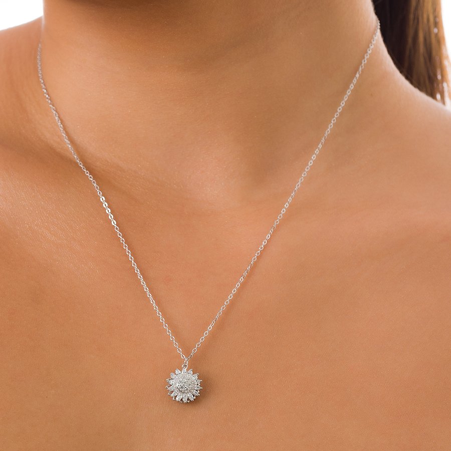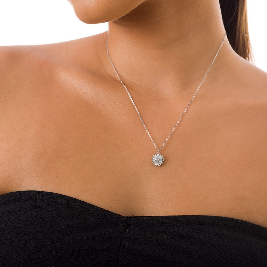 Oxzen κολιέ ασημένιο ροζέτα με μπαγιέτες ζιργκόν