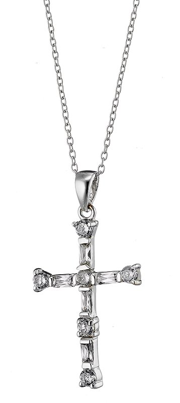 Oxzen κολιέ ασημένιο σταυρός με πέτρες ζιργκόν