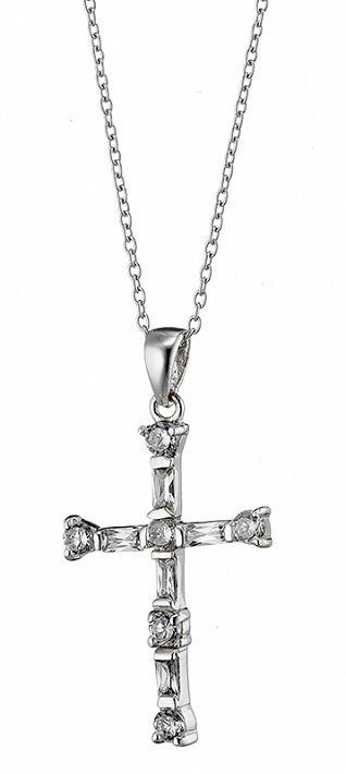 Κολιέ ατσάλινο σταυρός με πέτρες ζιργκόν