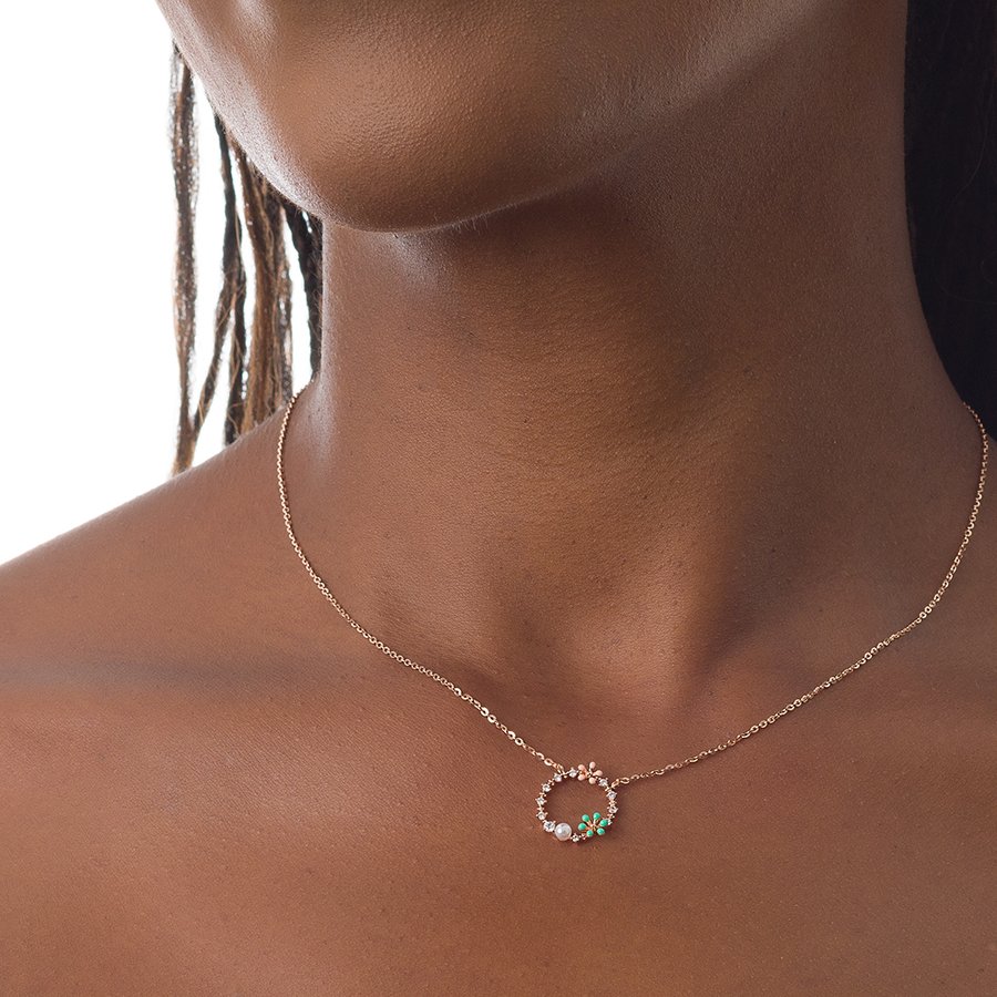 Oxzen κολιέ ασημένιο στεφανάκι με πέτρες