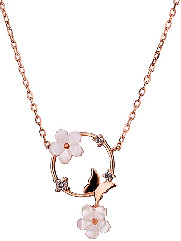 Oxzen κολιέ ασημένιο στεφάνι με μαργαρίτες και πεταλούδα