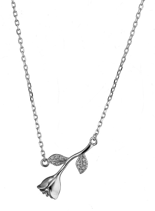 Oxzen κολιέ ασημένιο τριαντάφυλλο με λευκά ζιργκόν