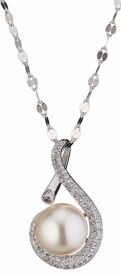 Oxzen κολιέ ασήμι με πέρλα Majorica και ζιργκόν